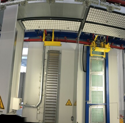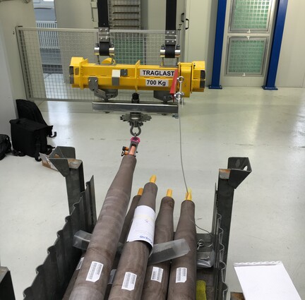 Die Abnahme erfolgt über den Hallenkran und wird in entsprechenden Bauteilaufnahmen abgelegt.